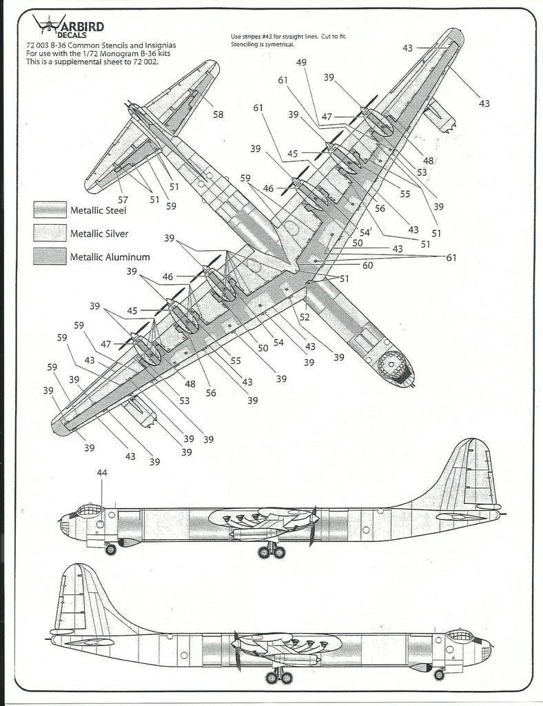 B-36 Peacemaker Standard Stencil Decals 1/72 WBD 72 003