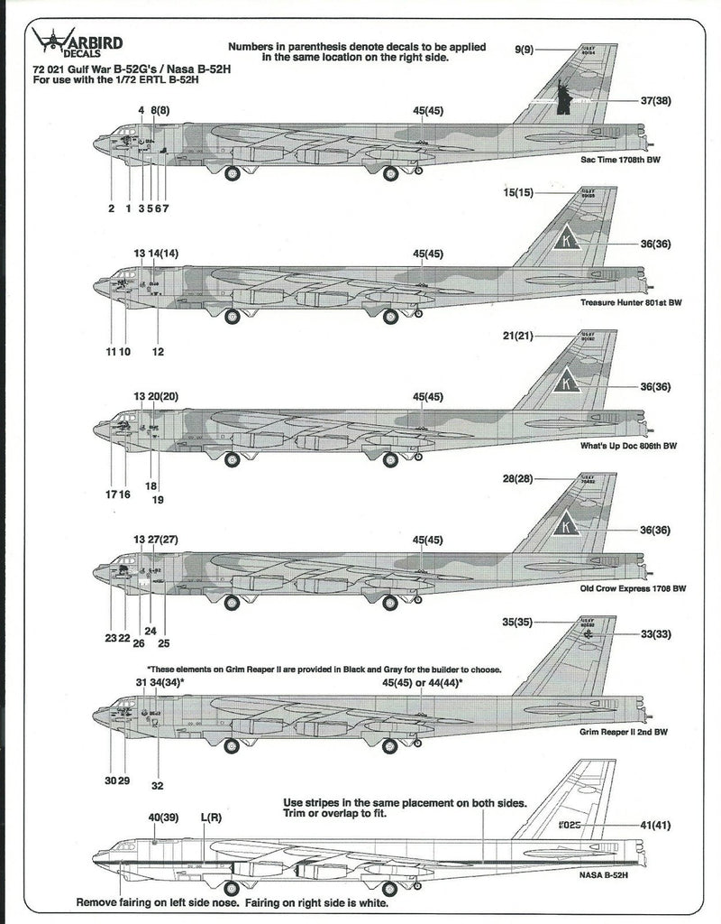 Gulf War, NASA B-52 G/H Stratofortress Decals 1/72 6 Options, SAC Time WBD 72021