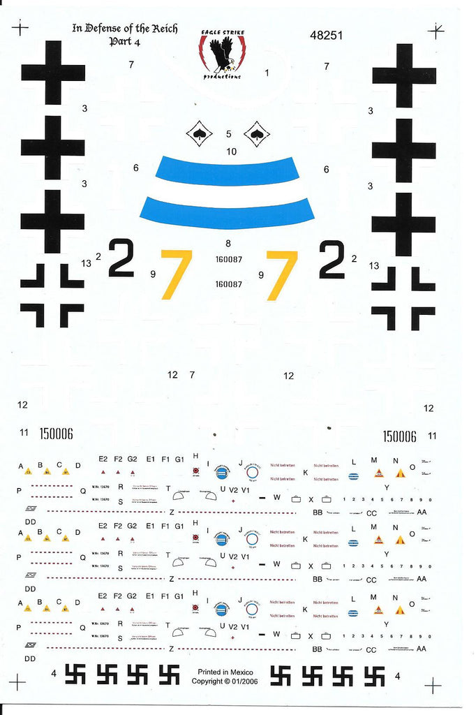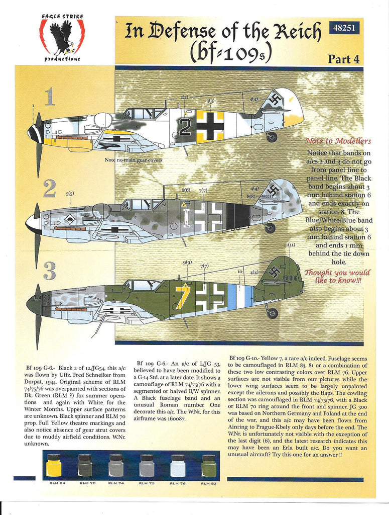 Eagle Strike Bf-109 G6/10, Defense of the Reich IV Decals 1/48 251, 3 Options