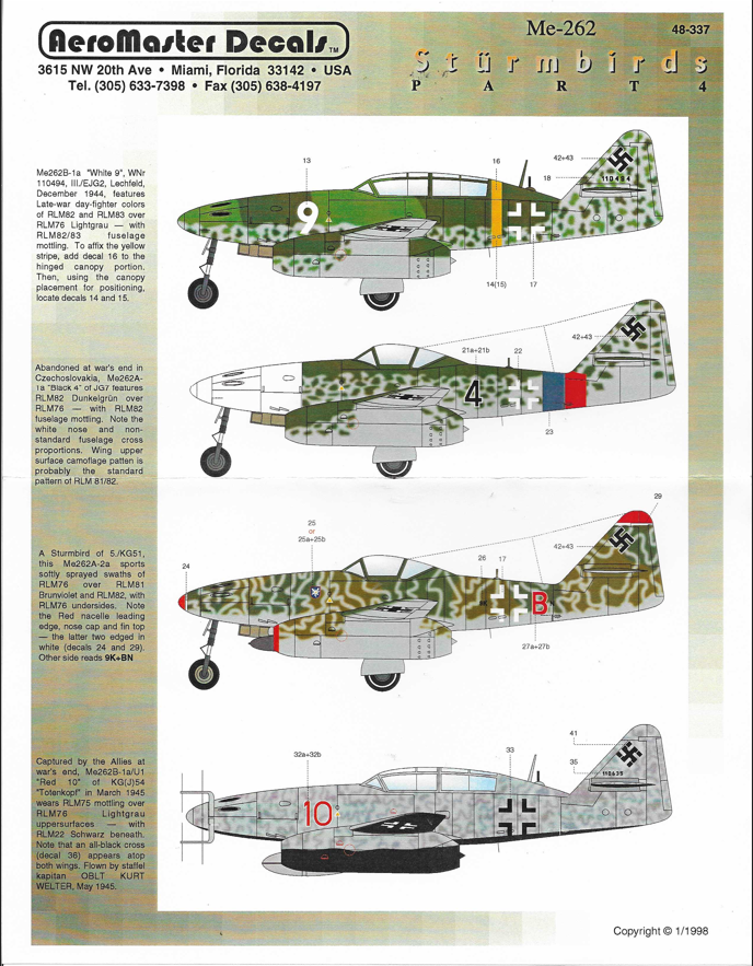 AeroMaster Me-262 Sturmbirds Part IV Decals 1/48 337
