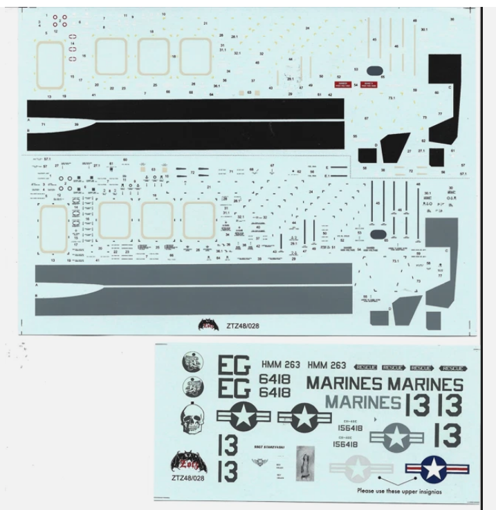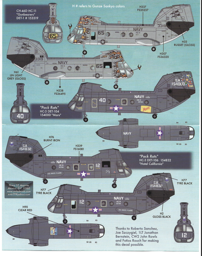 Colorful Zotz CH-46D/E Sea Knight Decals 1/48 028, HC-11, HC-3, USMC HHM-263