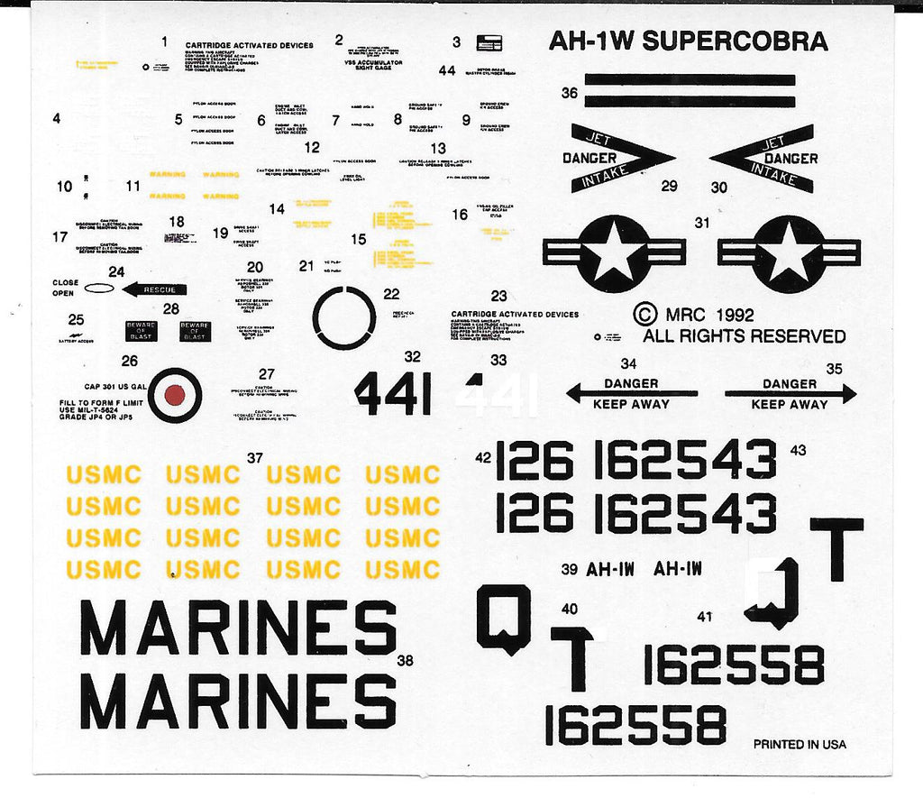 Loose, Box Stock MRC AH-1W Supercobra Helicopter Decals 1/35 NO INSTRUCTIONS