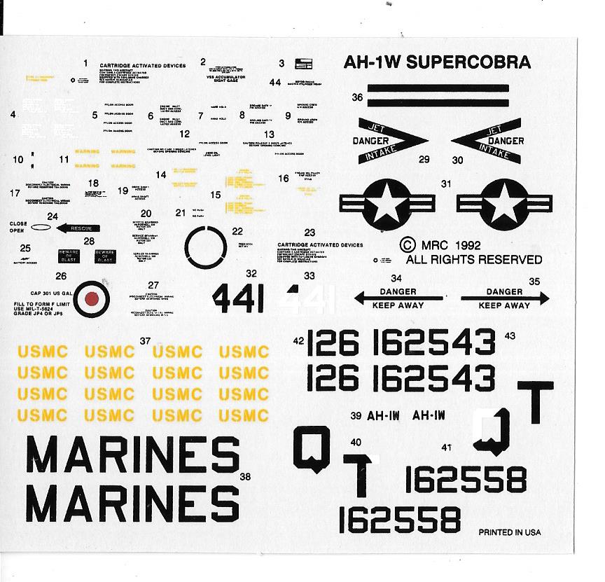 Home>Products>Loose, MRC AH-1W Supercobra Decals 1/35 NO INSTRUCTIONS