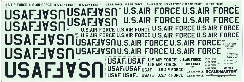 Loose, Scale-Master USAF, U.S. AIR FORCE Decals 1/72, 1/144 SM-18B NO INSTRUCTIONS