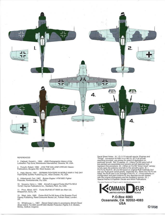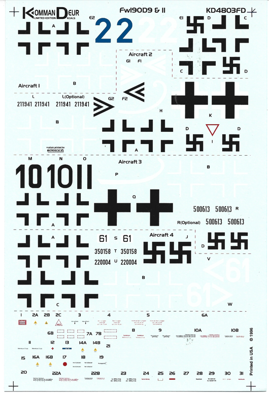 RARE KommanDeur Fw-19D-9/11 Decals in 1/48 03 FD