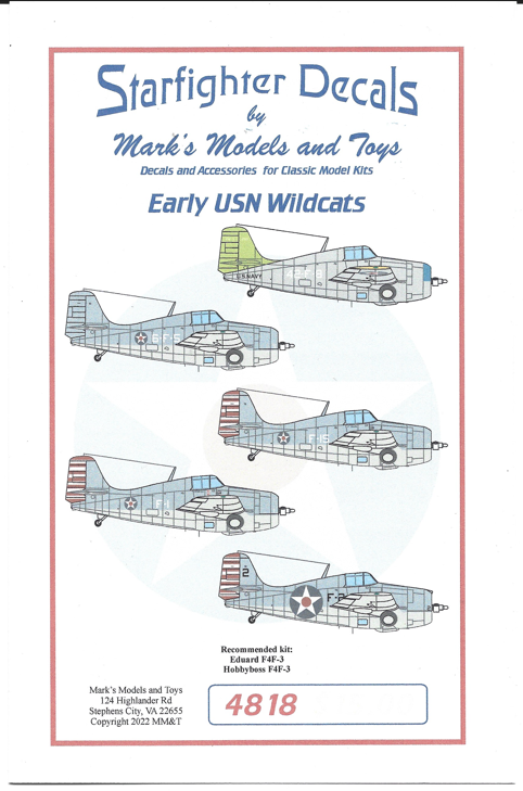 Starfighter Early USN Wildcat Decals 1/48 18, 6 Options