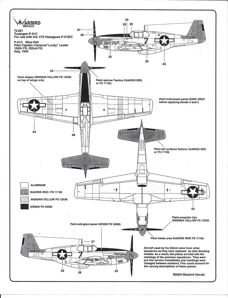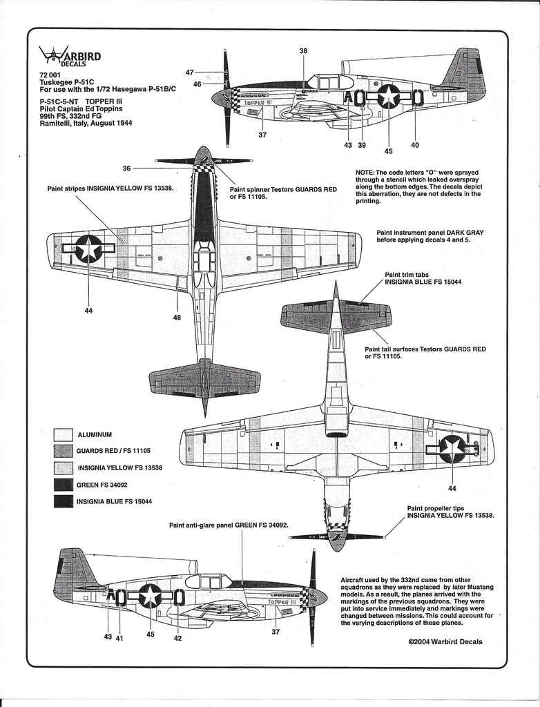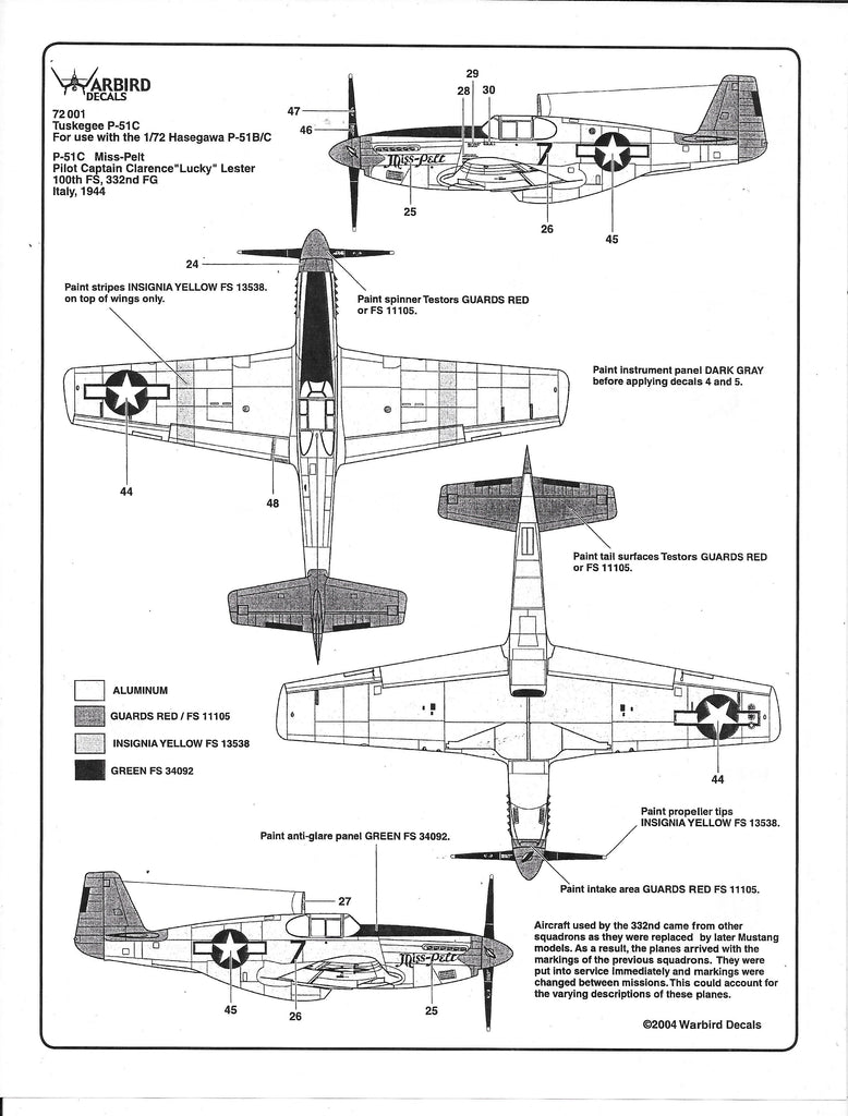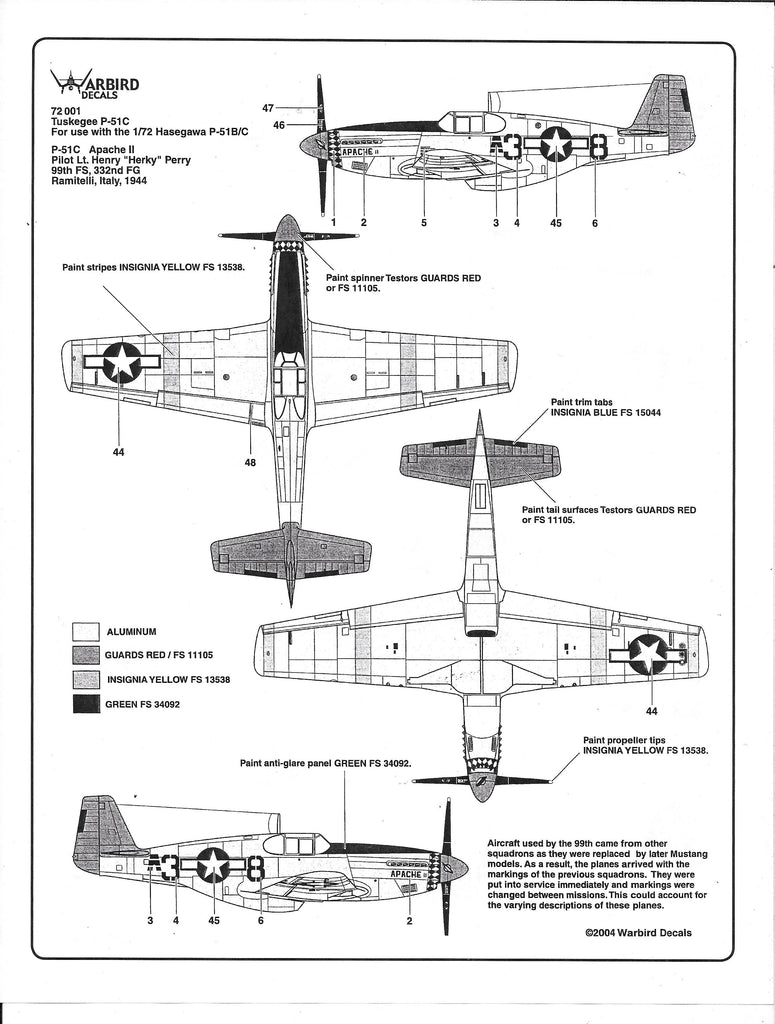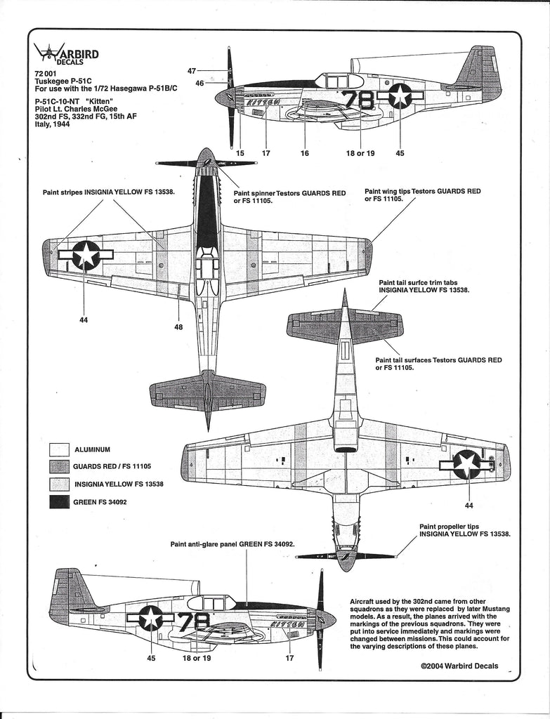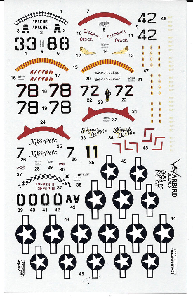 Tuskegee, 332nd FG P-51 B/C/D Mustang Decals 1/72 001, 7 Options