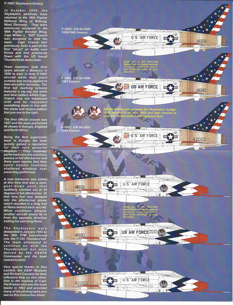 Two Bobs F-100C Super Sabre USAFE Skyblazers Decals 1/48 208